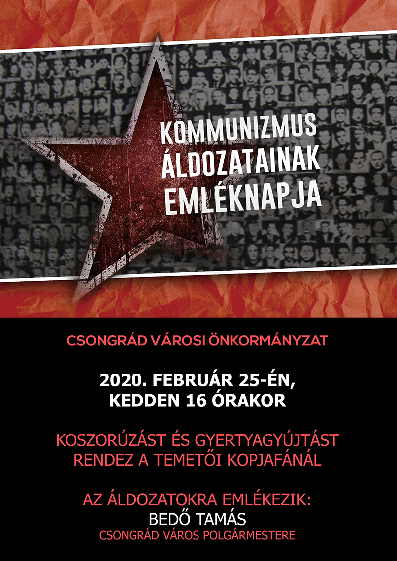 A kommunista diktatúrák áldozatainak emléknapja (szokásos említése: A kommunizmus áldozatainak emléknapja xiv. Százmilliósra teszik a kommunista diktatúrák halálos áldozatainak számát a világon, hazánkban is százezrek vesztették életüket. „a jövendő nemzedékek előtt kötelességünk feljegyezni a 20. A kommunizmus áldozatainak emléknapja 2020.02.25.